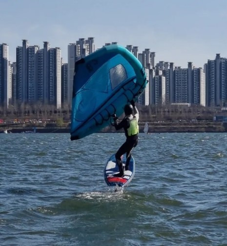 이론적으로는 비행기 날개와 유사한 원리로 바람을 이용하고, 무동력으로 추진력을 얻는 매력적인 스포츠죠.